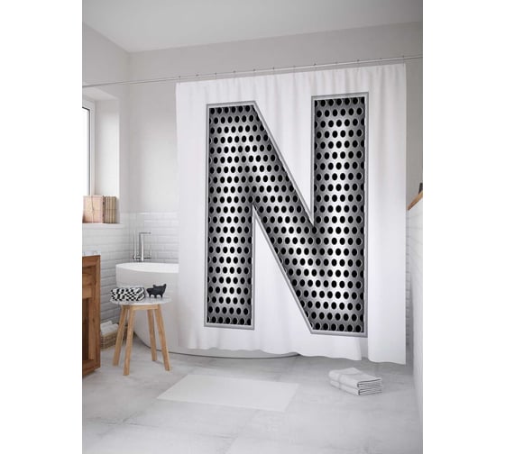 Штора (занавеска) для ванной JoyArty "Алюминиевая n" из сатена, 180х200 см с крючками, sc_4526n