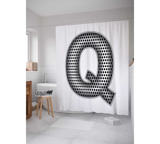 Штора (занавеска) для ванной JoyArty "Алюминиевая q" из сатена, 180х200 см с крючками, sc_4526Q