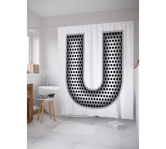 Штора (занавеска) для ванной JoyArty "Алюминиевая u" из сатена, 180х200 см с крючками, sc_4526U
