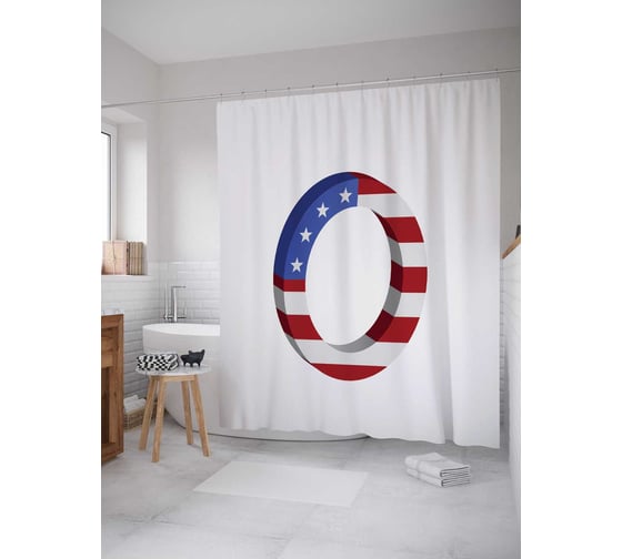 Штора (занавеска) для ванной JoyArty "Американская o" из сатена, 180х200 см с крючками, sc_4531o