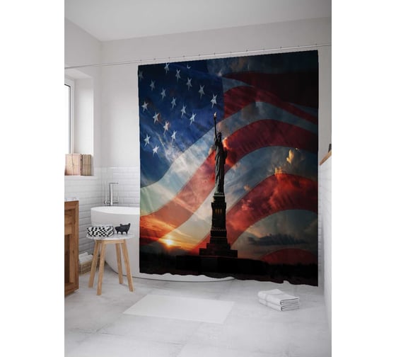 Штора (занавеска) для ванной JoyArty "Американская свобода" из сатена, 180х200 см с крючками, sc_17969
