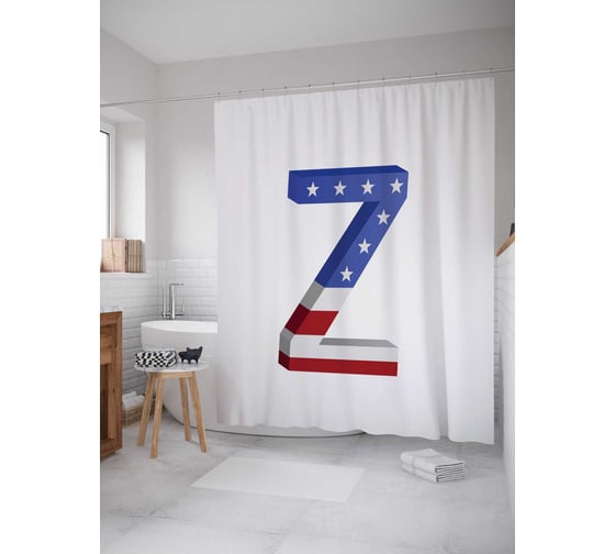 Штора (занавеска) для ванной JoyArty "Американская z" из сатена, 180х200 см с крючками, sc_4531Z