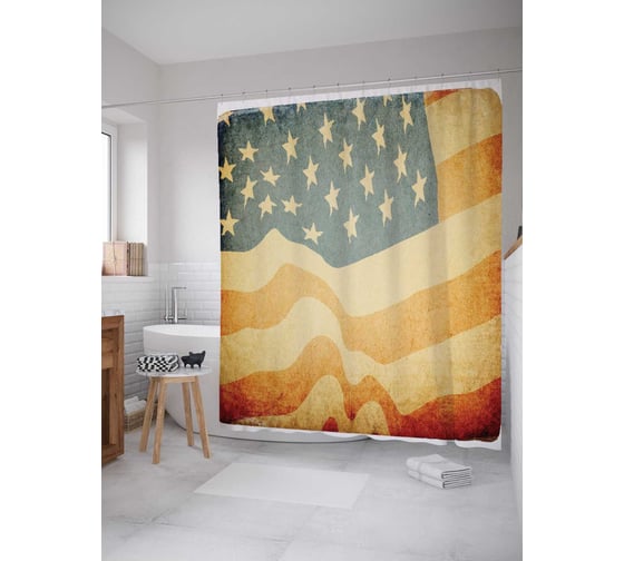 Штора (занавеска) для ванной JoyArty "Американский флаг гранж" из сатена, 180х200 см с крючками, sc_5029