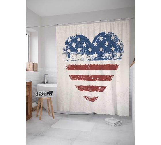 Сопутствующие товары для шторки-занавески JOYARTY Американский флаг в сердце из сатена, 180х200 см с крючками