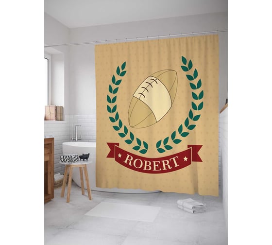 Штора (занавеска) для ванной JoyArty "Американский футбол Роберт" из сатена, 180х200 см с крючками, sc_5061