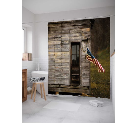 Штора (занавеска) для ванной JoyArty "Американский пост" из сатена, 180х200 см с крючками, sc_21335