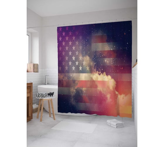 Штора (занавеска) для ванной JoyArty "Американский сон" из сатена, 180х200 см с крючками, sc_20692
