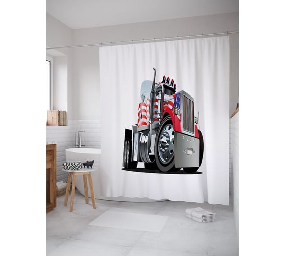 Штора (занавеска) для ванной JoyArty "Американский тягач" из сатена, 180х200 см с крючками, sc_53710