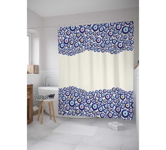 Штора (занавеска) для ванной JoyArty "Амулеты от сглаза" из сатена, 180х200 см с крючками, sc_35431