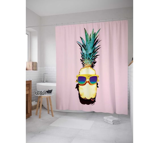 Сопутствующие товары для шторки-занавески JOYARTY Ананас в очках из сатена, 180х200 см с крючками
