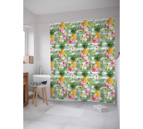 Штора (занавеска) для ванной JoyArty "Ананасовый пейзаж" из сатена, 180х200 см с крючками, sc_47784