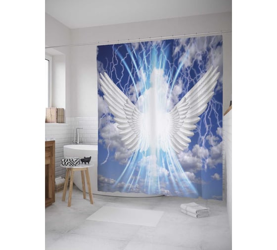 Штора (занавеска) для ванной JoyArty "Ангельский пегас" из сатена, 180х200 см с крючками, sc_8639