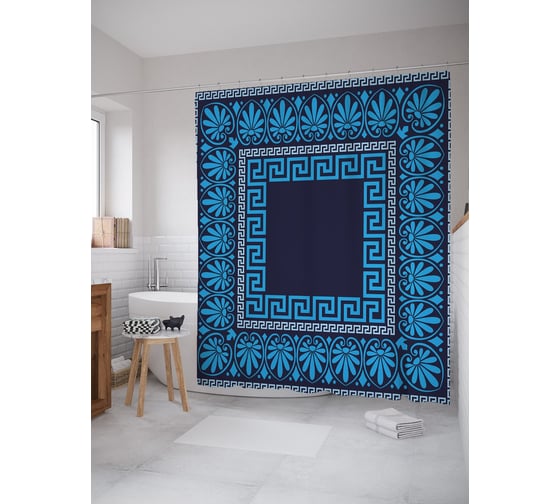 Штора (занавеска) для ванной JoyArty "Античное обрамление" из сатена, 180х200 см с крючками, sc_53999