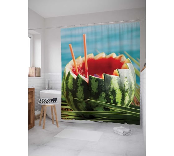 Штора (занавеска) для ванной JoyArty "Арбузный коктейль" из сатена, 180х200 см с крючками, sc_7460