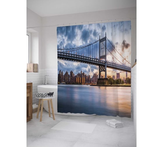 Штора (занавеска) для ванной JoyArty "Архитектурная гордость" из сатена, 180х200 см с крючками, sc_8988