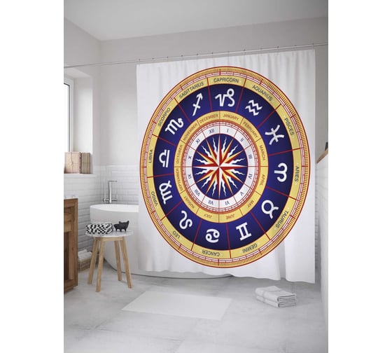 Штора (занавеска) для ванной JoyArty "Астрологический круг" из сатена, 180х200 см с крючками, sc_33742