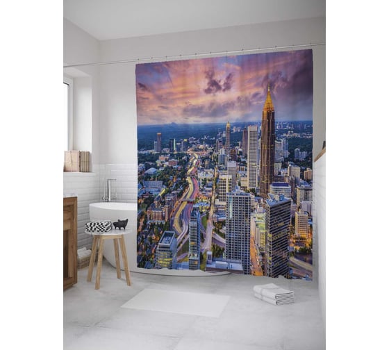 Штора (занавеска) для ванной JoyArty "Атланта сити" из сатена, 180х200 см с крючками, sc_32889