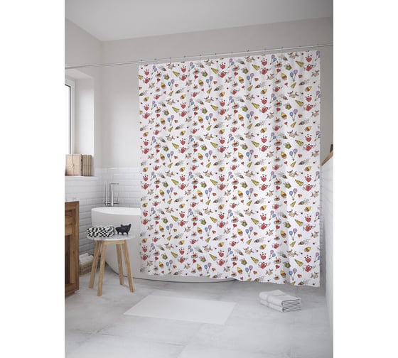 Штора (занавеска) для ванной JoyArty "Атрибутика именин" из сатена, 180х200 см с крючками, sc_55519