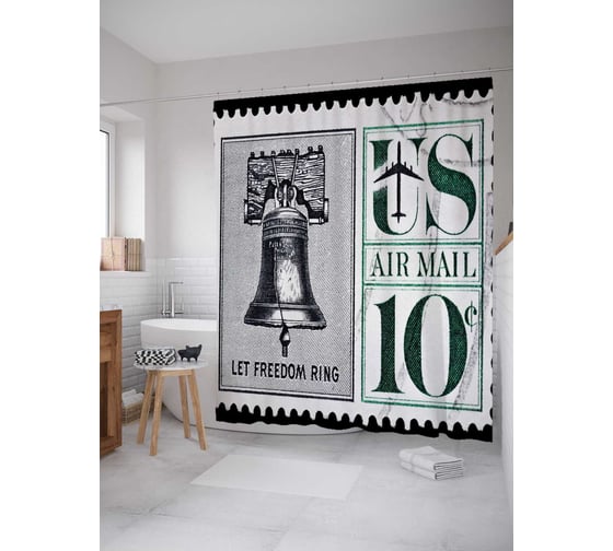 Штора (занавеска) для ванной JoyArty "Авиамарка Пусть свобода звенит" из сатена, 180х200 см с крючками, sc_7604