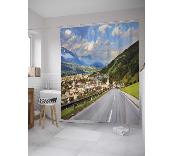 Сопутствующие товары для шторки-занавески JOYARTY Австрийские Альпы из сатена, 180х200 см с крючками