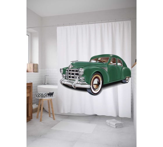 Штора (занавеска) для ванной JoyArty "Автоклассика" из сатена, 180х200 см с крючками, sc_9925