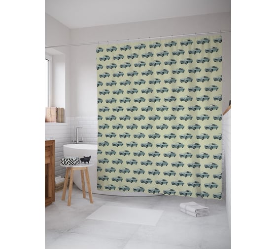 Штора (занавеска) для ванной JoyArty "Автомобиле ретро" из сатена, 180х200 см с крючками, sc_53485
