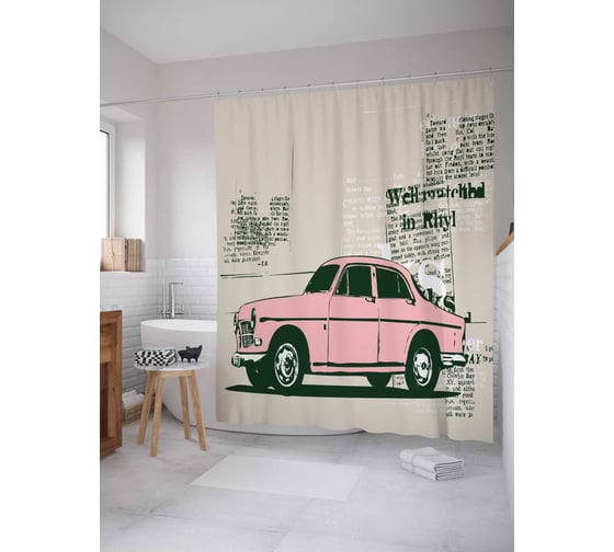 Штора (занавеска) для ванной JoyArty "Автомобильная газета" из сатена, 180х200 см с крючками, sc_17119