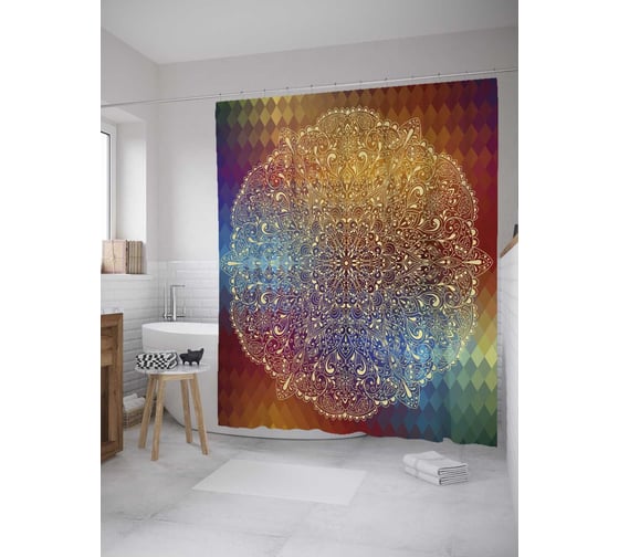 Штора (занавеска) для ванной JoyArty "Ажурная мандала" из сатена, 180х200 см с крючками, sc_31294