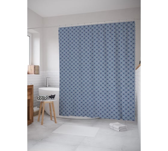 Штора (занавеска) для ванной JoyArty "Азиатский геометрический вектор" из сатена, 180х200 см с крючками, sc_57625