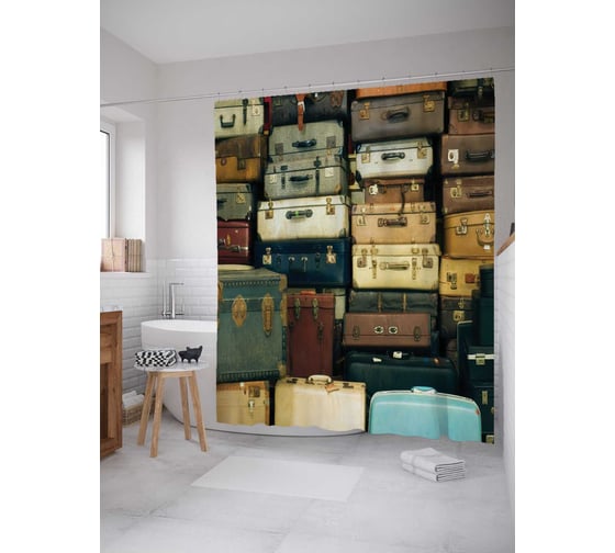 Штора (занавеска) для ванной JoyArty "Багажный отсек" из сатена, 180х200 см с крючками, sc_13148