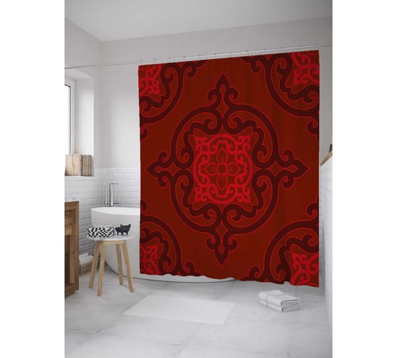 Штора (занавеска) для ванной JoyArty "Багряный ажур" из сатена, 180х200 см с крючками, sc_35576