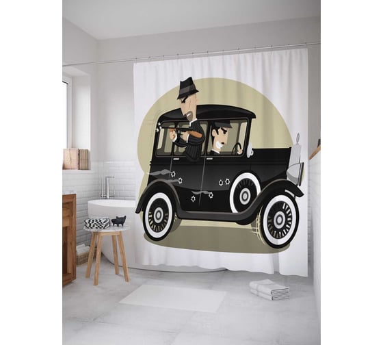 Штора (занавеска) для ванной JoyArty "Бандиты в машине" из сатена, 180х200 см с крючками, sc_30224