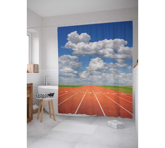 Штора (занавеска) для ванной JoyArty "Беговые треки" из сатена, 180х200 см с крючками, sc_10918