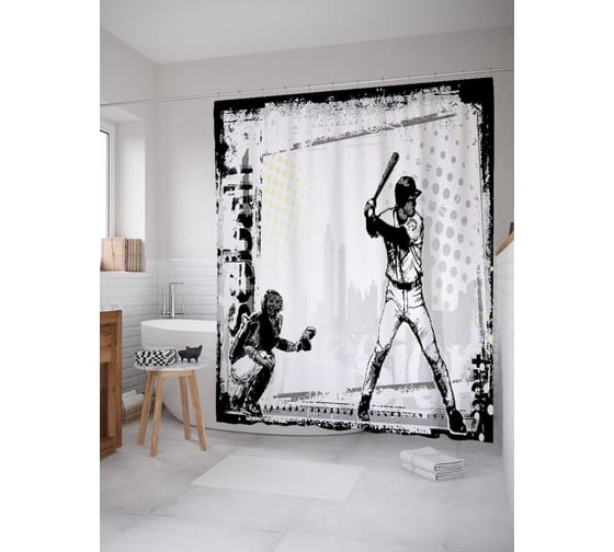 Штора (занавеска) для ванной JoyArty "Бейсбольный образ" из сатена, 180х200 см с крючками, sc_11434
