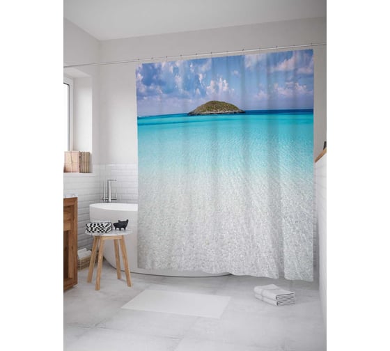 Штора (занавеска) для ванной JoyArty "Безлюдный остров" из сатена, 180х200 см с крючками, sc_13958