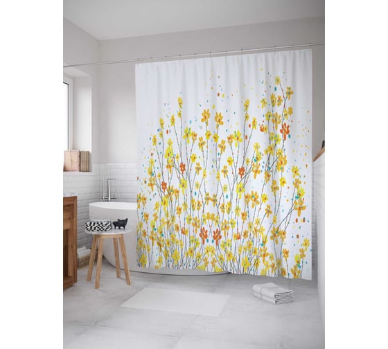 Штора (занавеска) для ванной JoyArty "Безудержные цветы" из сатена, 180х200 см с крючками, sc_16653