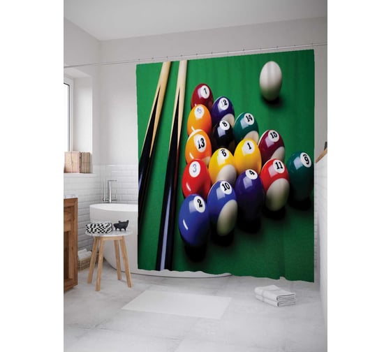 Штора (занавеска) для ванной JoyArty "Бильярдный набор" из сатена, 180х200 см с крючками, sc_9906