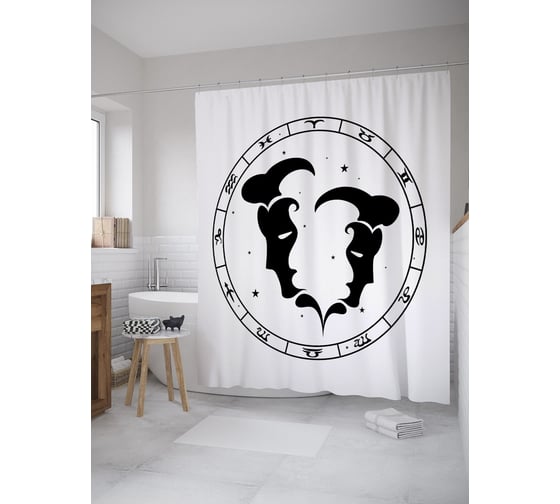 Штора (занавеска) для ванной JoyArty "Близнецы в астрологии" из сатена, 180х200 см с крючками, sc_60357