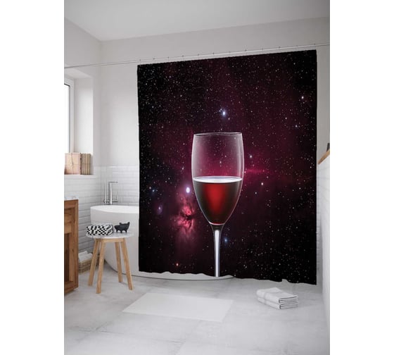 Штора (занавеска) для ванной JoyArty "Бокал вина в космосе" из сатена, 180х200 см с крючками, sc_52068