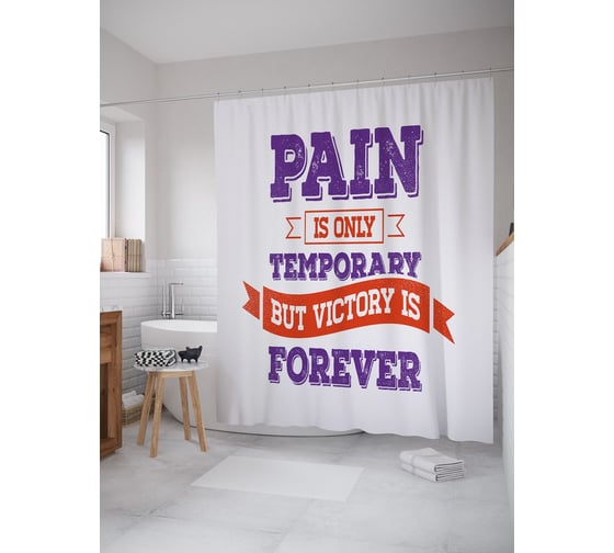 Штора (занавеска) для ванной JoyArty "Боль временна, но победа вечна" из сатена, 180х200 см с крючками, sc_39020