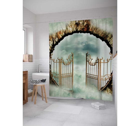 Штора (занавеска) для ванной JoyArty "Божественные ворота" из сатена, 180х200 см с крючками, sc_12897