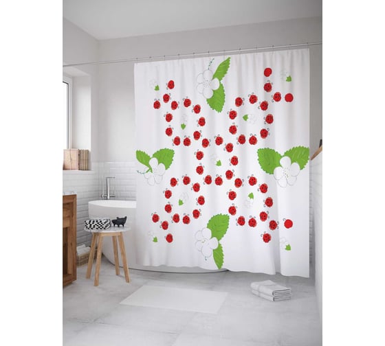 Штора (занавеска) для ванной JoyArty "Божьи коровки в танце" из сатена, 180х200 см с крючками, sc_6122