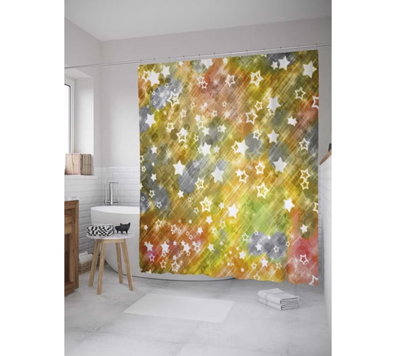 Штора (занавеска) для ванной JoyArty "Брызги звезд" из сатена, 180х200 см с крючками, sc_32718