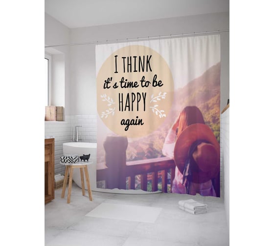 Штора (занавеска) для ванной JoyArty "Будь счастлив" из сатена, 180х200 см с крючками, sc_78610