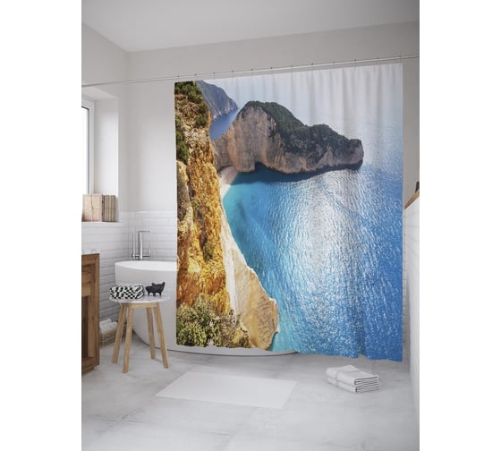 Штора (занавеска) для ванной JoyArty "Бухта Навайо" из сатена, 180х200 см с крючками, sc_60513
