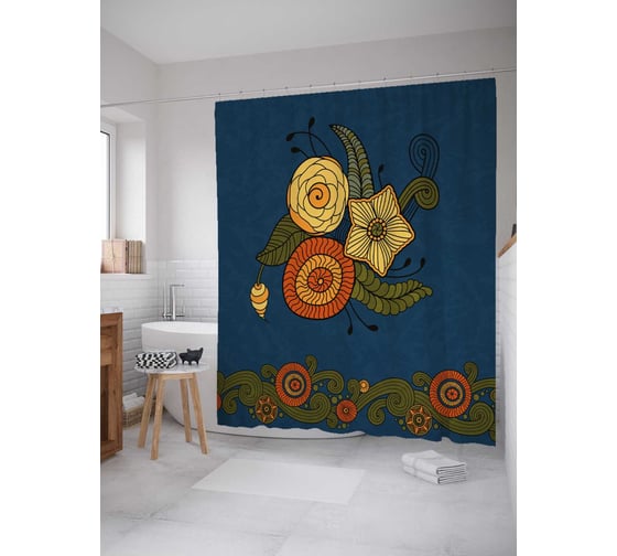 Сопутствующие товары для шторки-занавески JOYARTY Букет дудл из сатена, 180х200 см с крючками