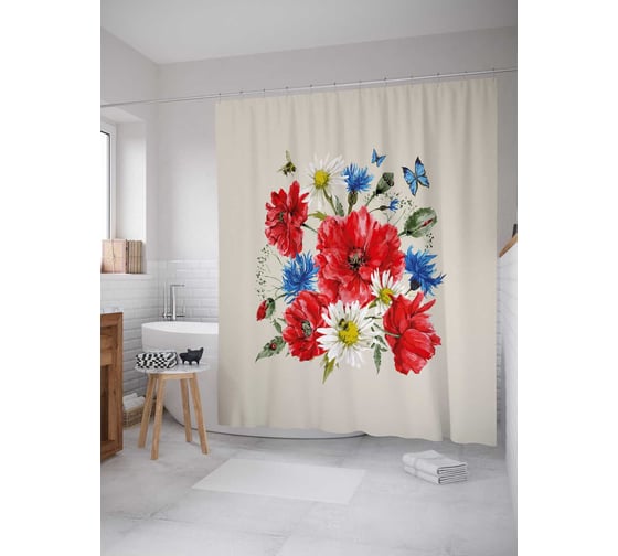 Сопутствующие товары для шторки-занавески JOYARTY Букет из гвоздик из сатена, 180х200 см с крючками