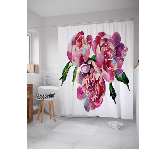 Штора (занавеска) для ванной JoyArty "Букет пионов" из сатена, 180х200 см с крючками, sc_29762