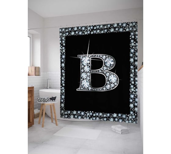 Штора (занавеска) для ванной JoyArty "Буква B" из сатена, 180х200 см с крючками, sc_3470b