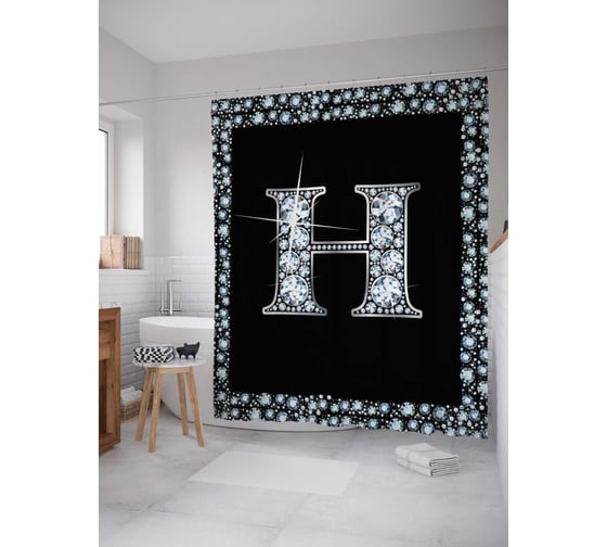 Штора (занавеска) для ванной JoyArty "Буква H" из сатена, 180х200 см с крючками, sc_3470h